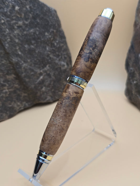Flaming Box Elder Burl Cigar Ballpoint Pen