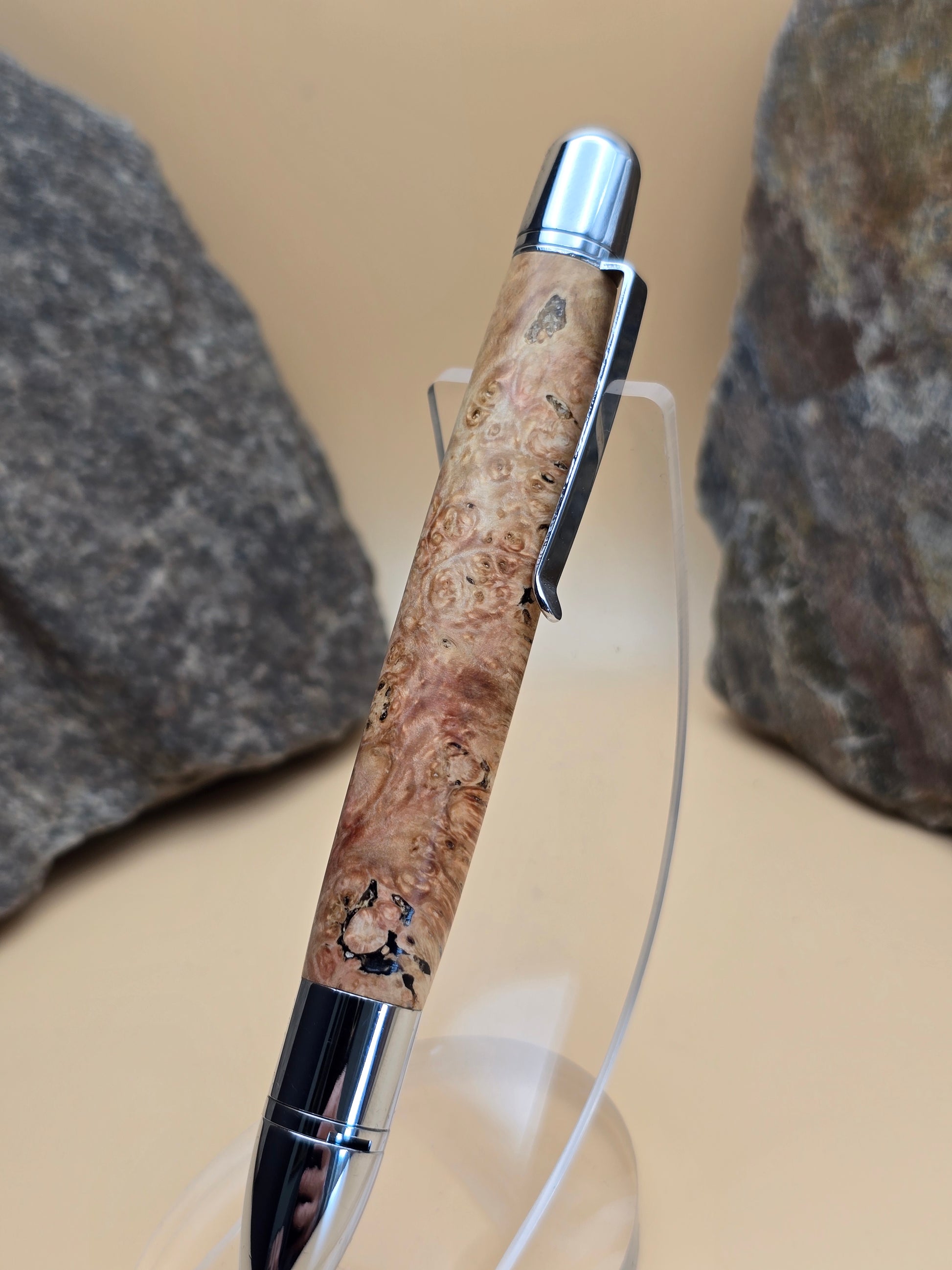Flame Box Elder Burl Capless Rollerball Pen