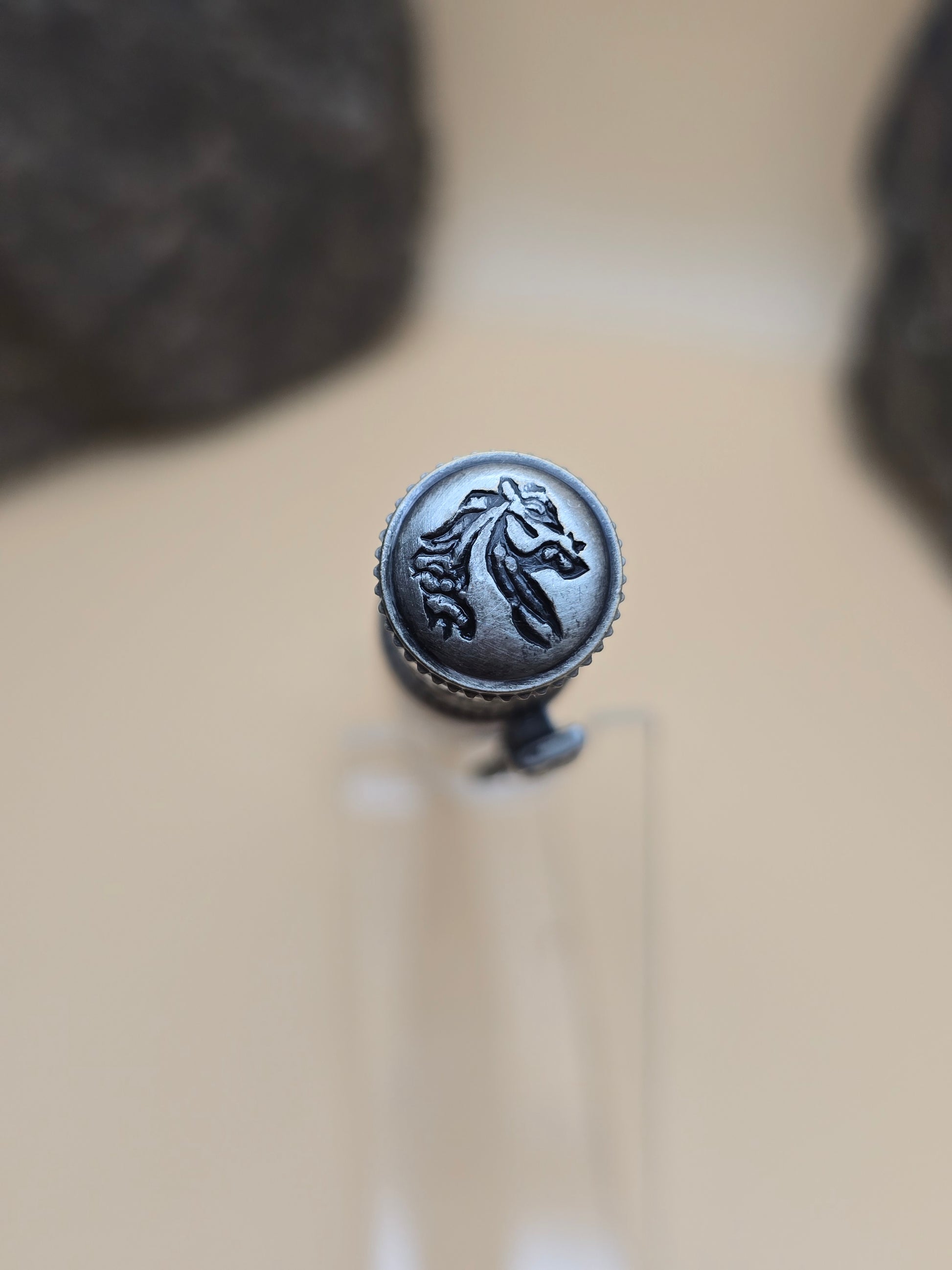 Featuring Finely detailed Horse designs on the crown, clip, and grip