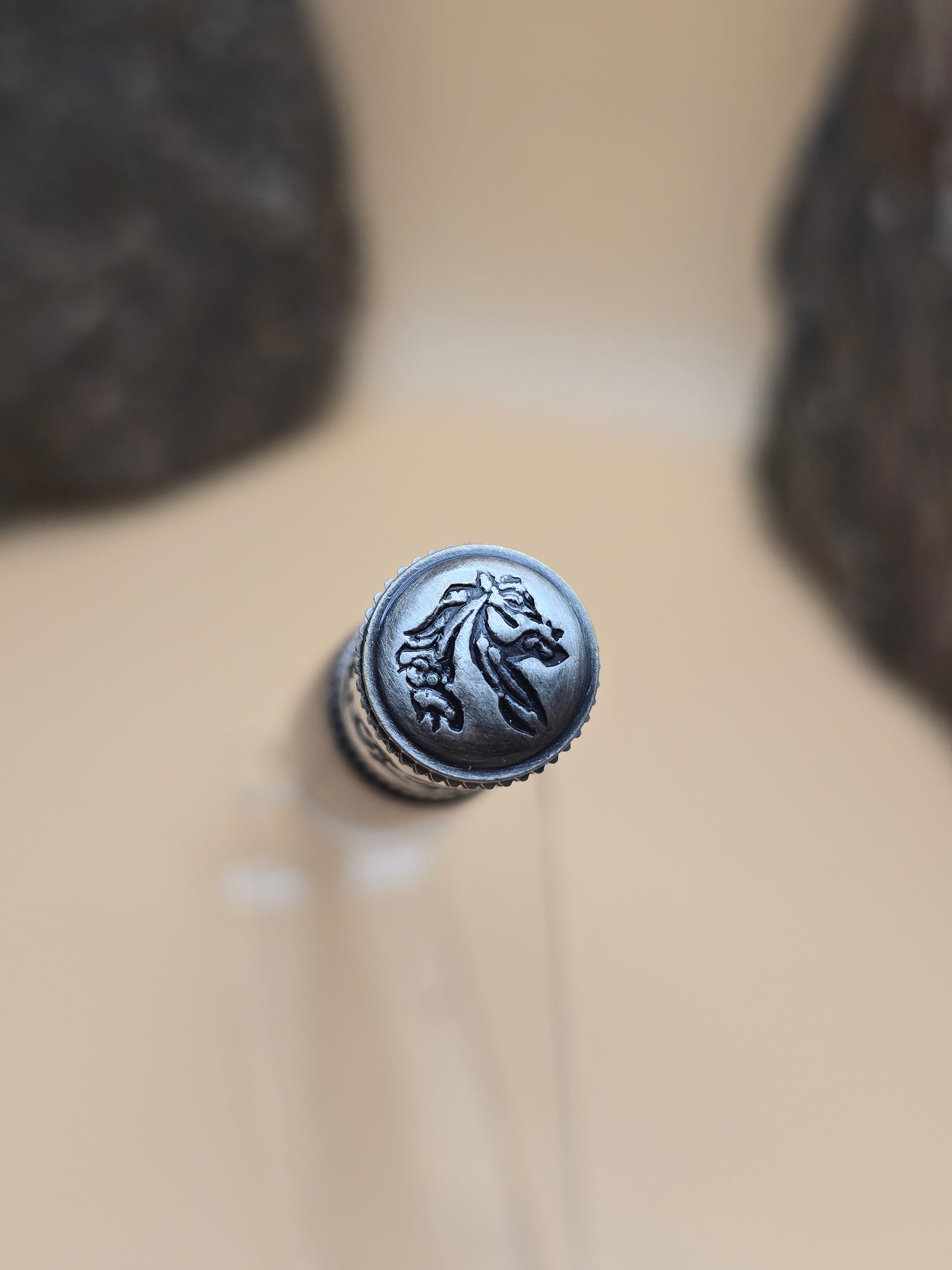 Featuring Finely detailed Horse designs on the crown, clip, and grip