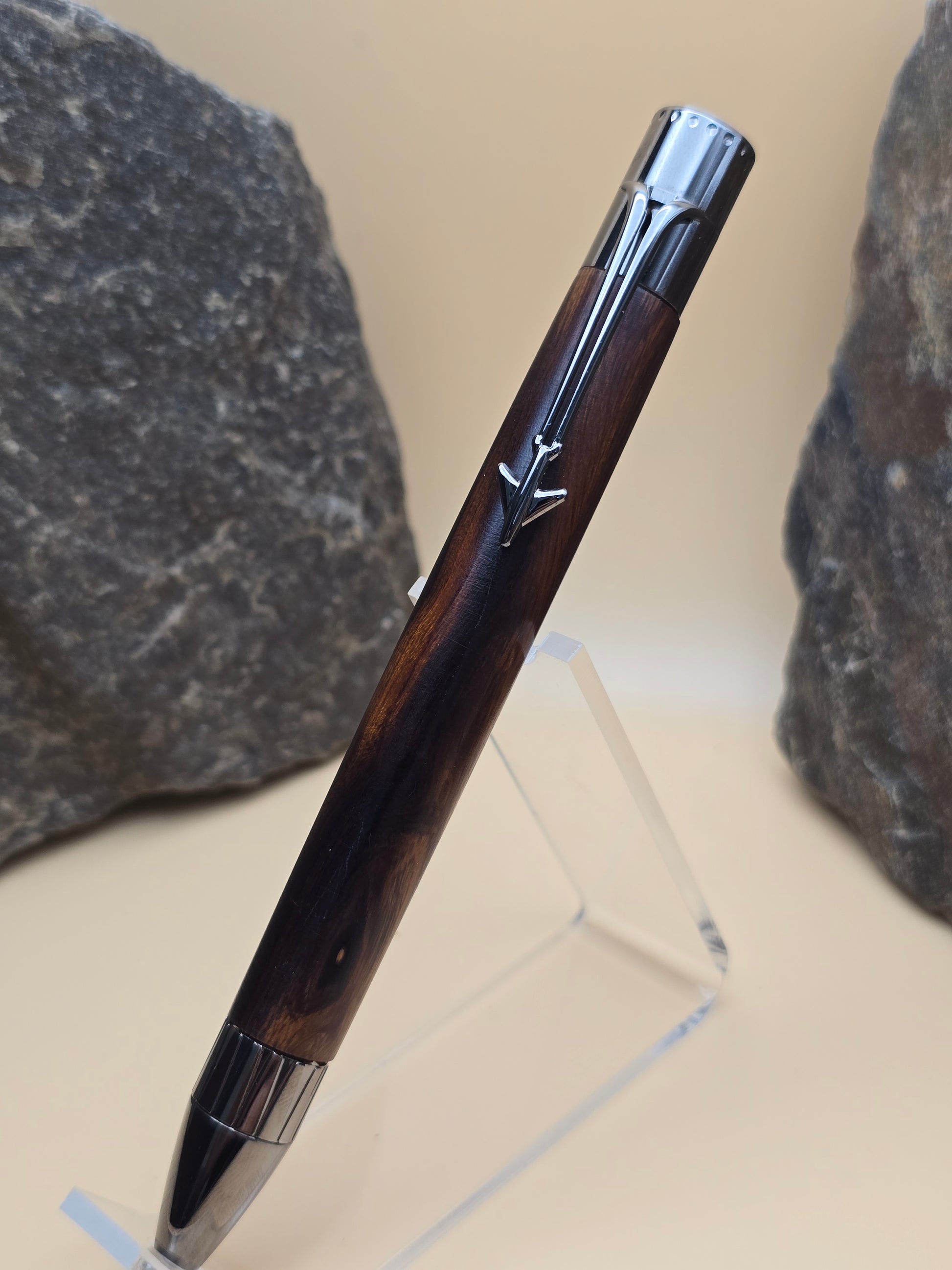 This ballpoint pen features desert Ironwood, paired with an airline theme pen. A commercial airliner on the clip, and a turbine on the crown complete the decor.