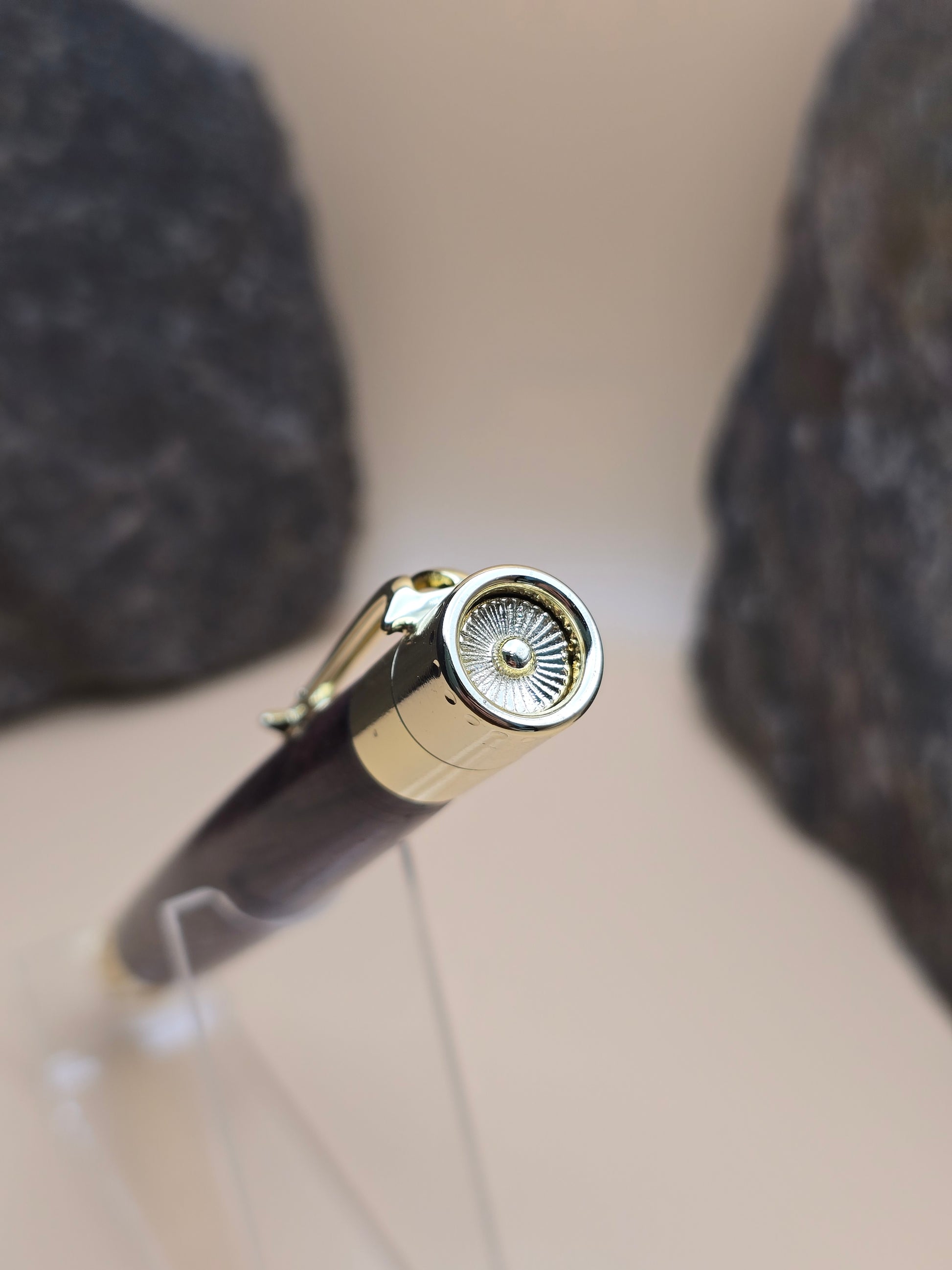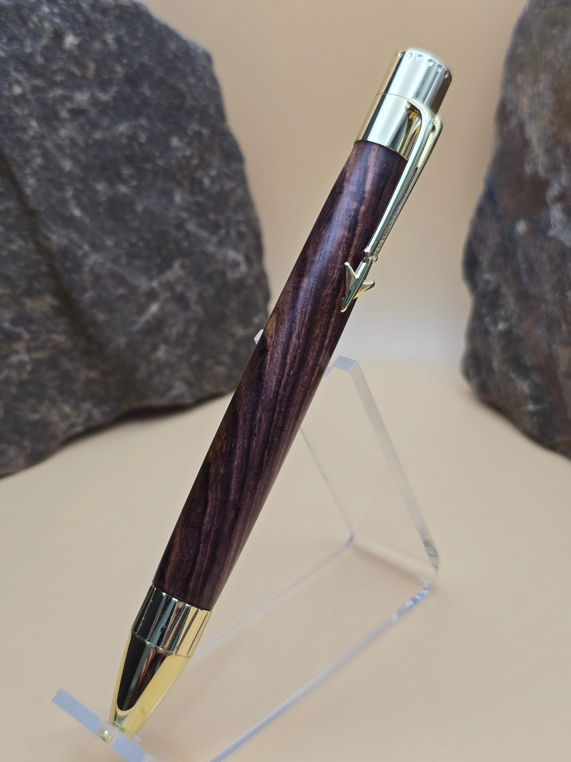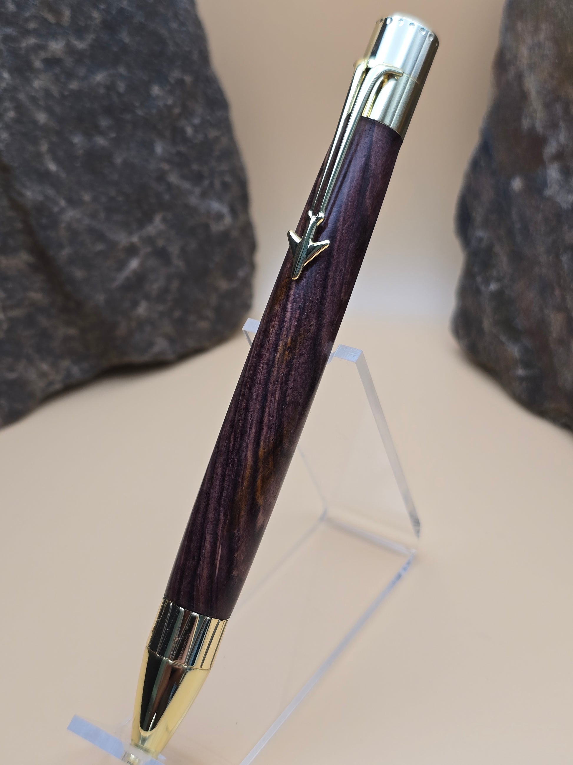 This ballpoint features cocobolo wood, paired with an airline theme pen. A commercial airliner on the clip, and a turbine on the crown complete the decor.