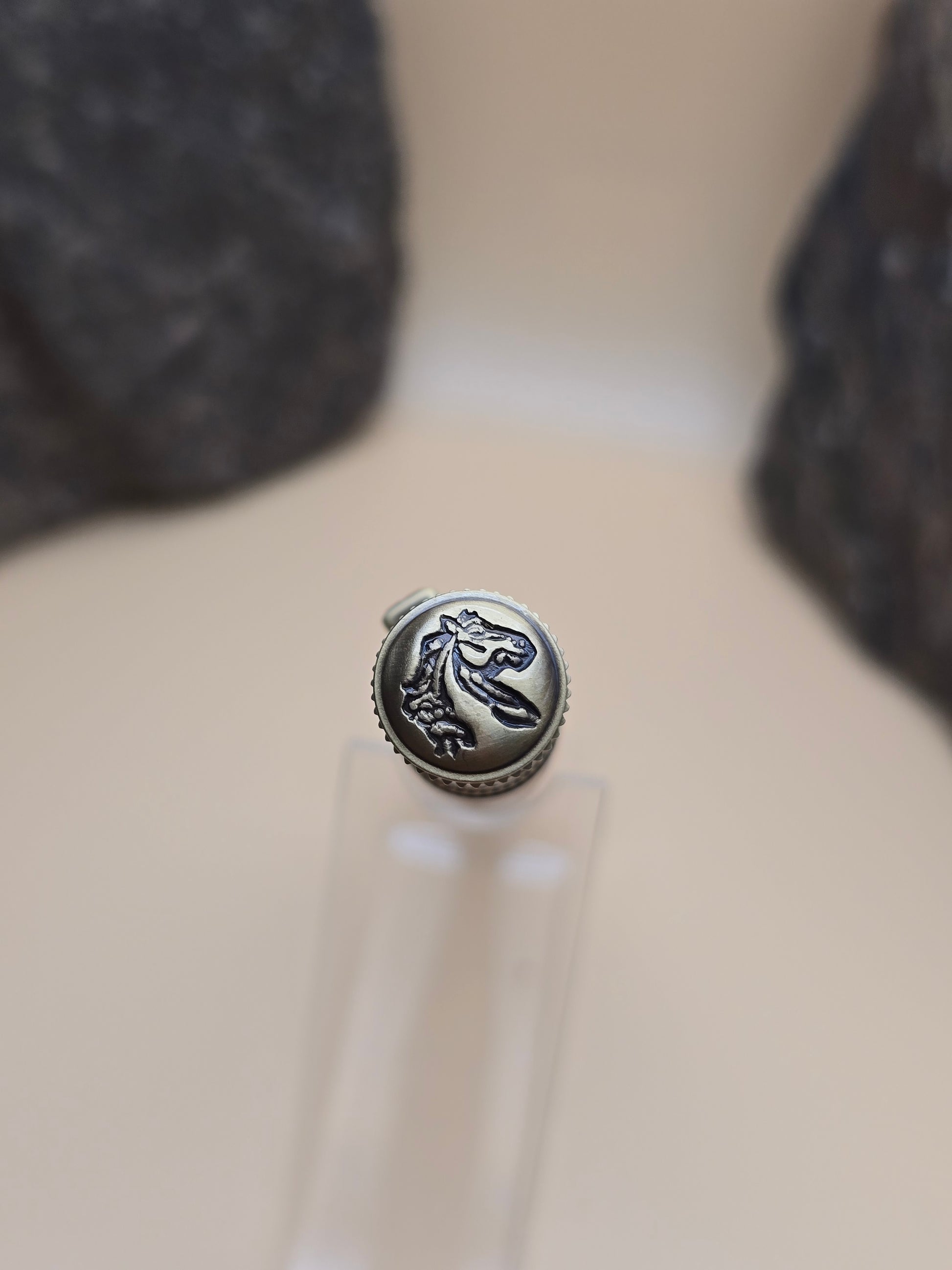 Featuring Finely detailed Horse designs on the crown, clip, and grip